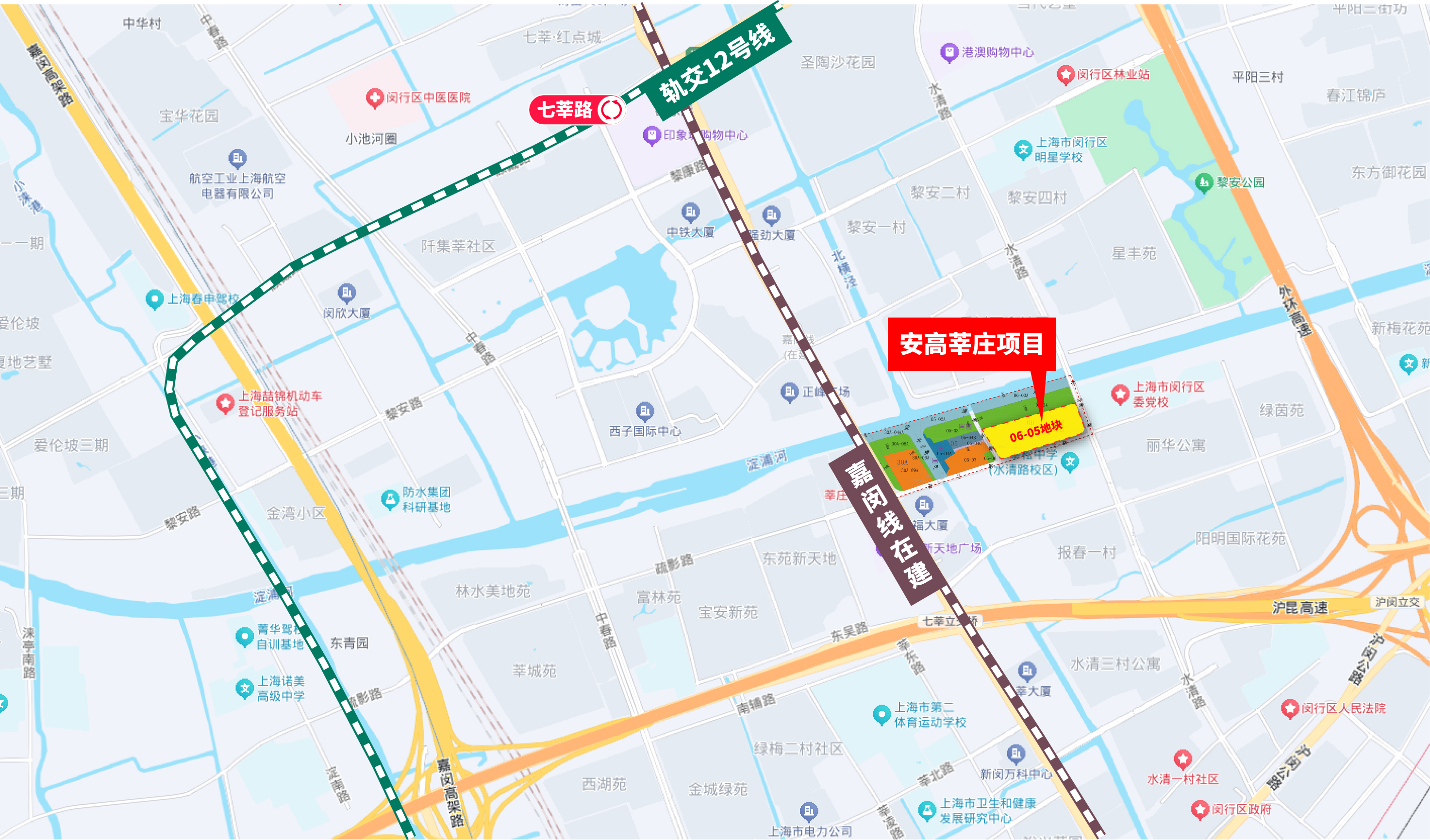 【交通配套】:项目距离1/5号线/金山铁路(莘庄路)约1.5km,。自驾近中环,嘉闵高架。【商业配套】:周边商业配套成熟,有东苑新天地广场,港澳购物中心,莘庄维璟印象城,凯德闵行商业中心,百联南方购物中心等。【教育配套】:周边学校众多,莘松中学(水清路校区),上海市莘光学校(小学部),上海市闵行区明星学校,上海市莘光学校,新梅小学,上海市民办协和双语尚音学校,上海市闵行区莘庄实验小学(北校区),上海市龙茗中学等[仅列举项目周边学校名称,不作对口承诺,学区划分最终以教育局公布为准」。【医疗配套】:上海市闵行区中心医院,复旦大学附属儿科医院。
